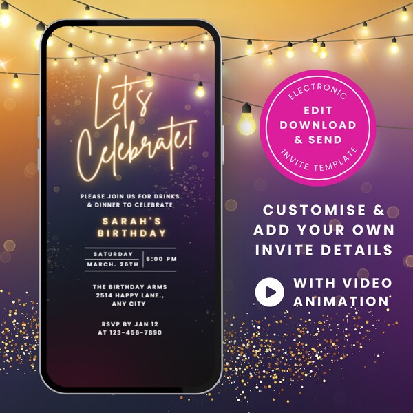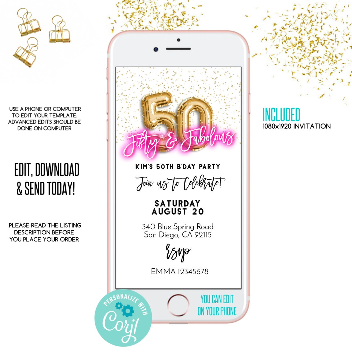 Electronic Invitation Birthday Party Invitation Mobile Etsy